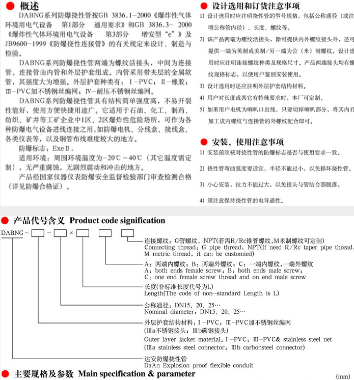| 產(chǎn)品名稱: | DABNG系列防爆撓性管 |