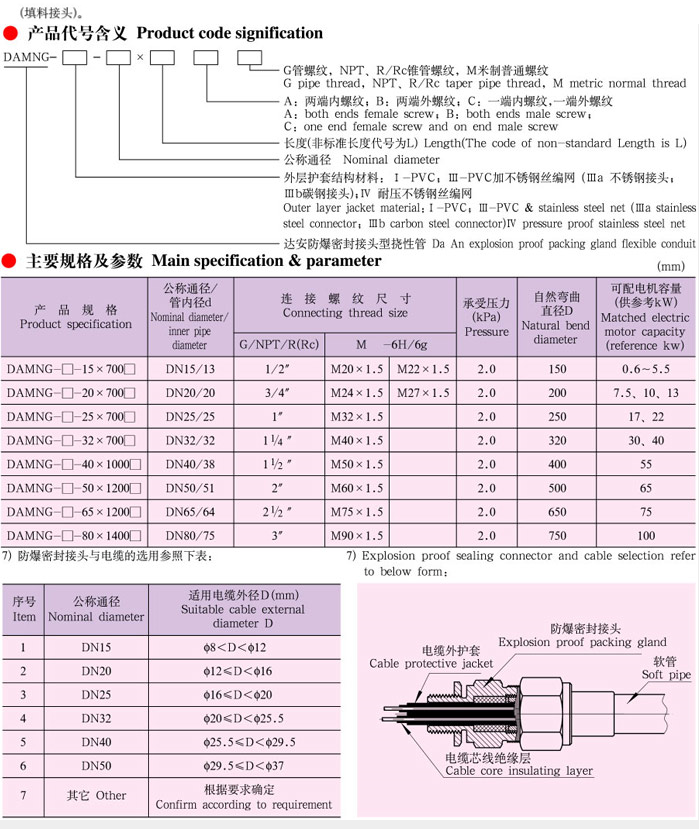 | 產(chǎn)品名稱: | DAMNG系列密封接頭型防爆撓性管 |