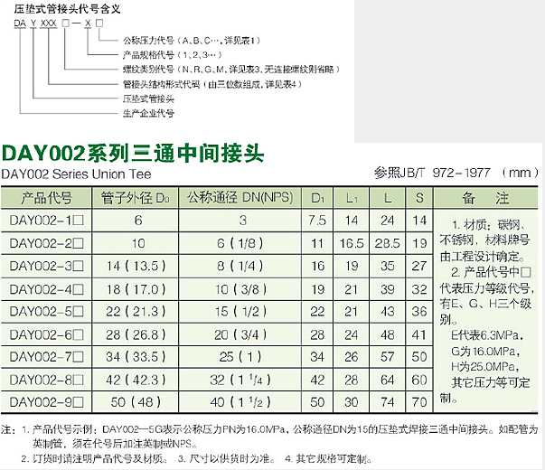 | 產(chǎn)品名稱: | DAY002系列三通中間接頭 |