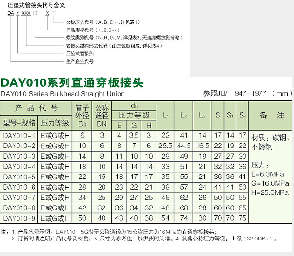| 產(chǎn)品名稱: | DAY010系列直通穿板接頭 |