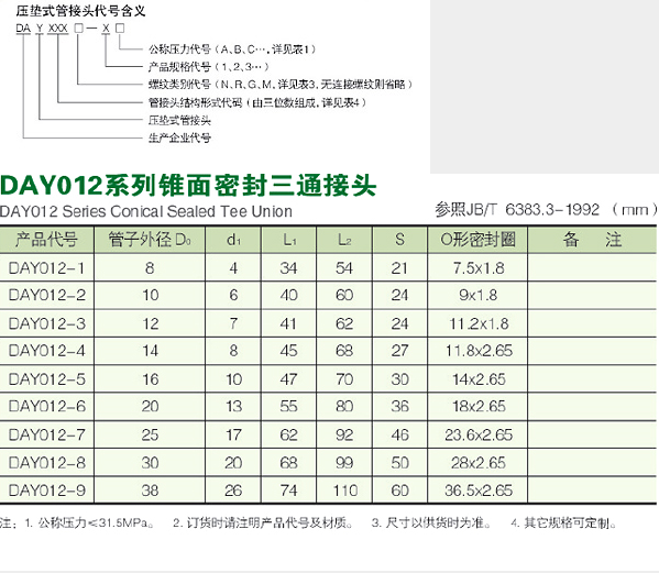 | 產(chǎn)品名稱: | DAY012系列錐面密封三通接頭 |
