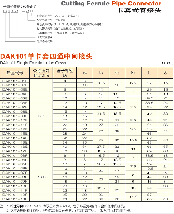 | 產(chǎn)品名稱: | DAK101單卡套四通中間接頭 |
