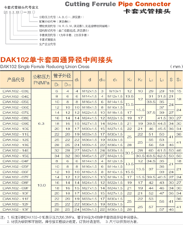 | 產(chǎn)品名稱: | DAK102單卡套四通異徑中間接頭 |