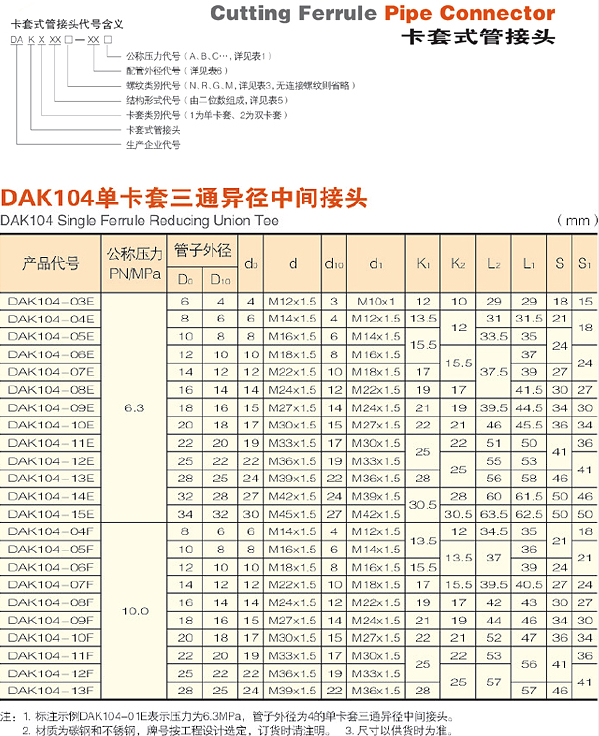| 產(chǎn)品名稱: | DAK104單卡套三通異徑中間接頭 |