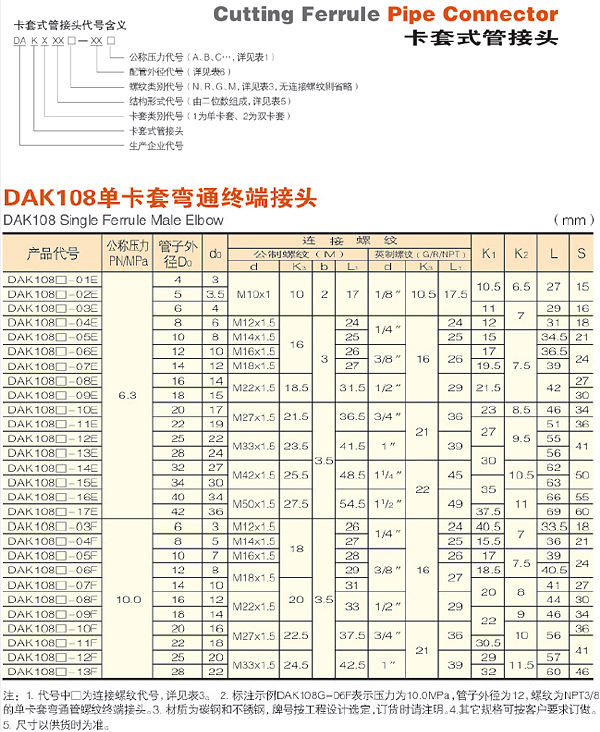 | 產(chǎn)品名稱: | DAK108單卡套彎通終端接頭 |