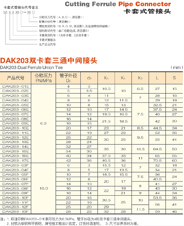 | 產(chǎn)品名稱: | DAK203雙卡套三通中間接頭 |