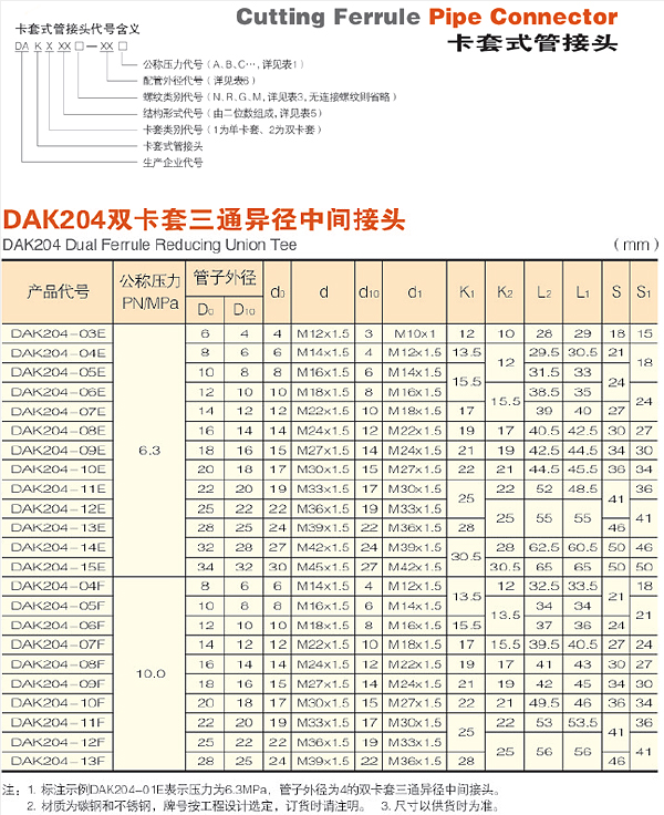 | 產(chǎn)品名稱: | DAK204雙卡套三通異徑中間接頭 |