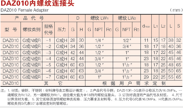 | 產(chǎn)品名稱: | DAZ010內(nèi)螺紋連接頭 |