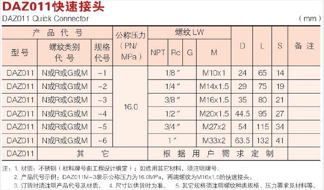 | 產(chǎn)品名稱: | DAZ011快速接頭 |