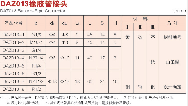 | 產(chǎn)品名稱: | DAZ013橡膠管接頭 |