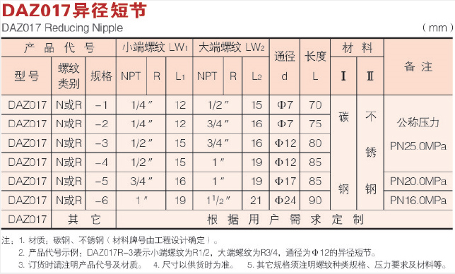 | 產(chǎn)品名稱(chēng): | DAZ017異徑短節(jié) |
